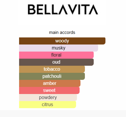 White Oud by BellaVita is a fragrance for women and men. White Oud was launched in 2022. Top notes are Orange and Wormwood; middle notes are Agarwood, Freesia, Patchouli and Blackcurrant; base notes are Musk, Tobacco, Amber and Woody Notes.