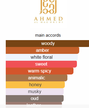 Marj by Ahmed Al Maghribi is a fragrance for women and men. Marj was launched in 2023. Top notes are Honey, Oud, Pink Pepper, elemi, Nutmeg, Bergamot and Mandarin; middle notes are Cashmere Wood, Orange Blossom, Saffron, Jasmine, Cinnamon, Patchouli and Vetiver; base notes are Agarwood, Saffron, Leather, Raspberry, Ambergris, Amber, Oakmoss, Sandalwood, Musk, Violet and Pear.